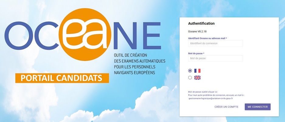 1 - Dans un premier temps il faut créer un compte sur le site Océane DGAC : https://oceane-candidat.aviation-civile.gouv.fr/login